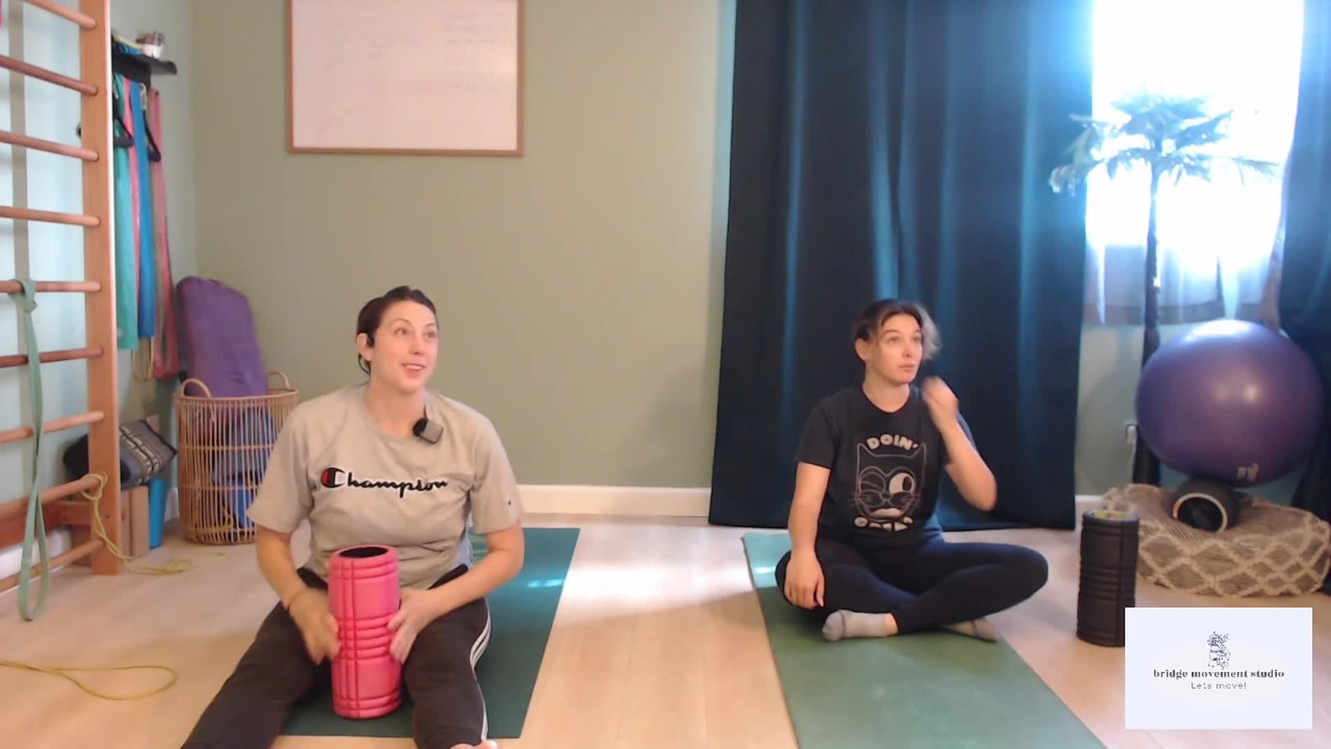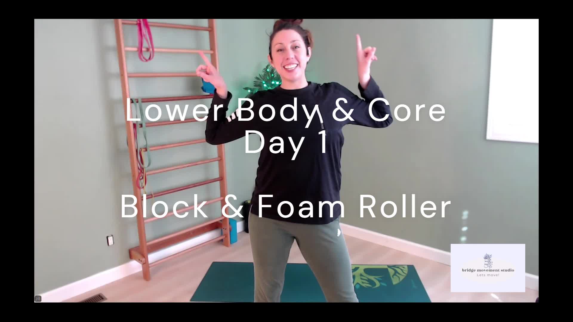 Class starts on the mat with core exercises using a foam roller. Next, we use a block for a two-round circuit focused on the lower body.